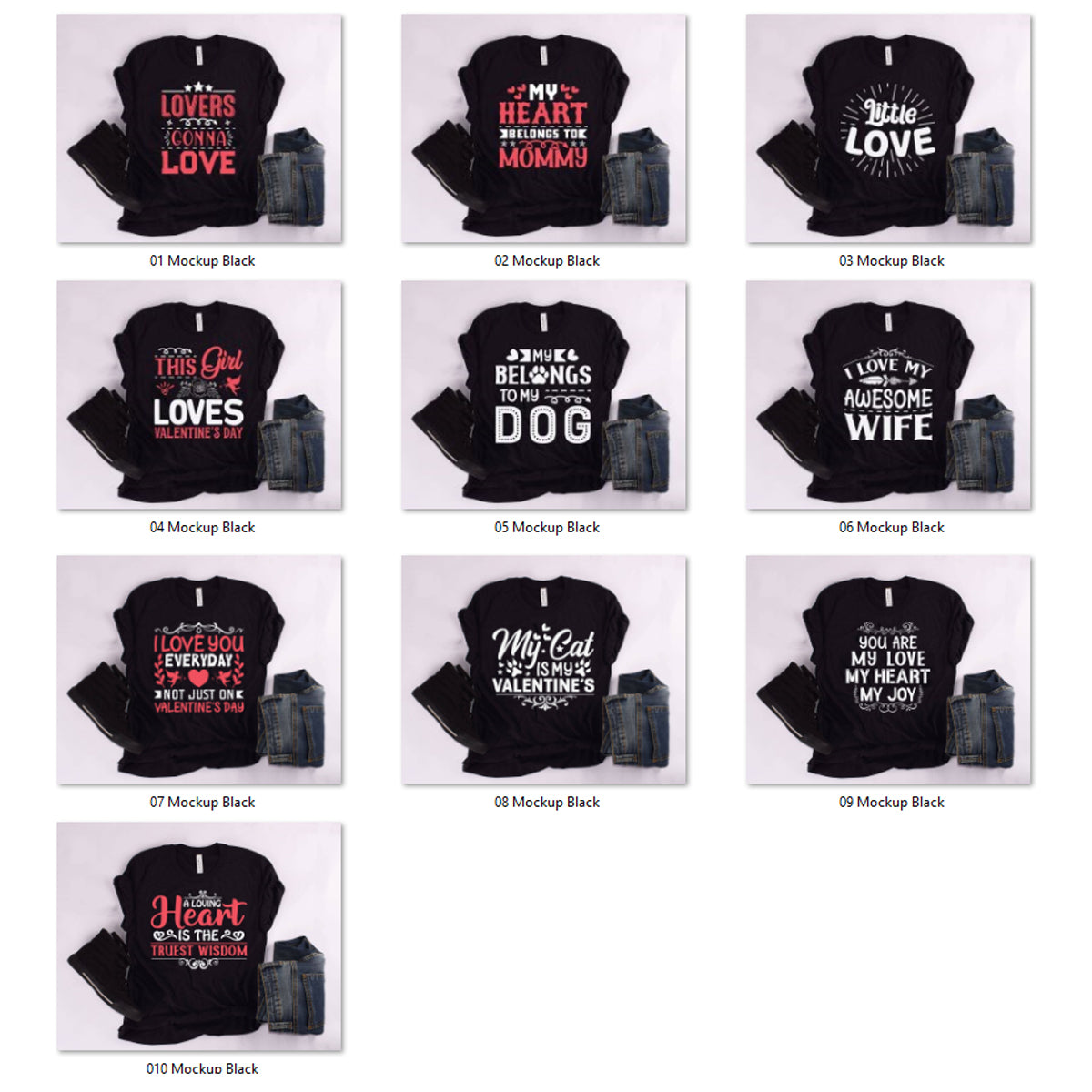 Includes 10 files in each category: